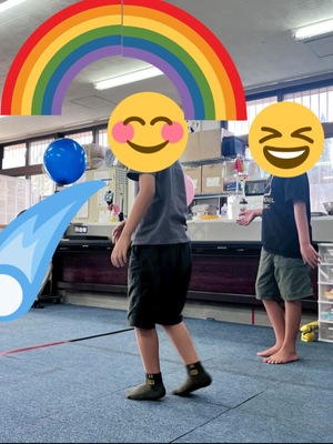 風船があっちへ行ったりこっちへ行ったりでゴールまで運ぶのもひと苦労でしたが、頑張って取り組んでくれていました。