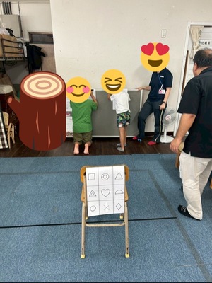 今日の集団活動は図形を覚えて描きにいく遊びをしました。皆んな覚えて走って描いてを繰り返して真剣に取り組めていましたよ〜^ ^
