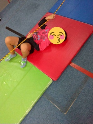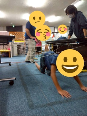 縄をよく見てジャンプしたりくぐったり、縄に当たらないように通り抜けたり、縄登りや蜘蛛の巣など行いました♪