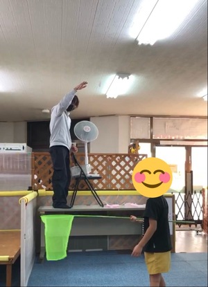 手やお箸でキャッチとはまた違って距離ができる分1回目はキャッチも難しそうにしている児童もいましたが回数を重ねてキャッチも上手になっていました(o^^o)